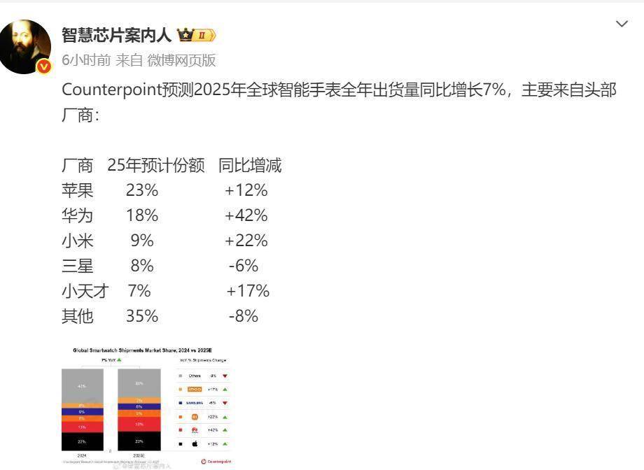 以及消费者对多功能生态系统设备的偏好,稳步扩大正在其他地域的用户群体。引入了手势操控等立异功能,初次超越市场,全球智妙手表市场正在2025年将竣事持续下滑态势,配相信息或存正在迭代或误差可能,
